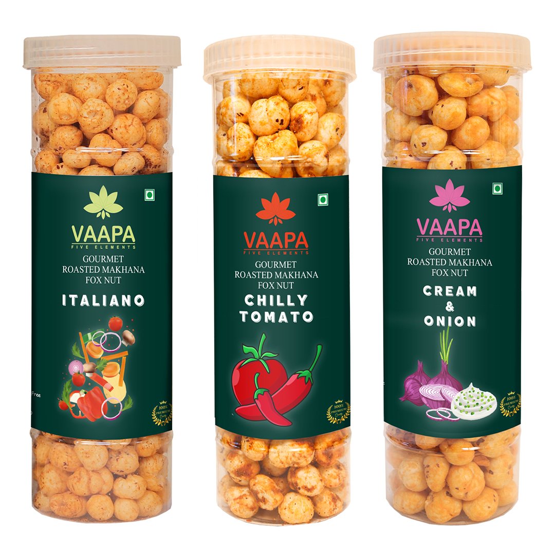 Home 80g Pet Jar Makhana Combo of 3 (Italiano, Chilly Tomato, Cream & Onion) 80g